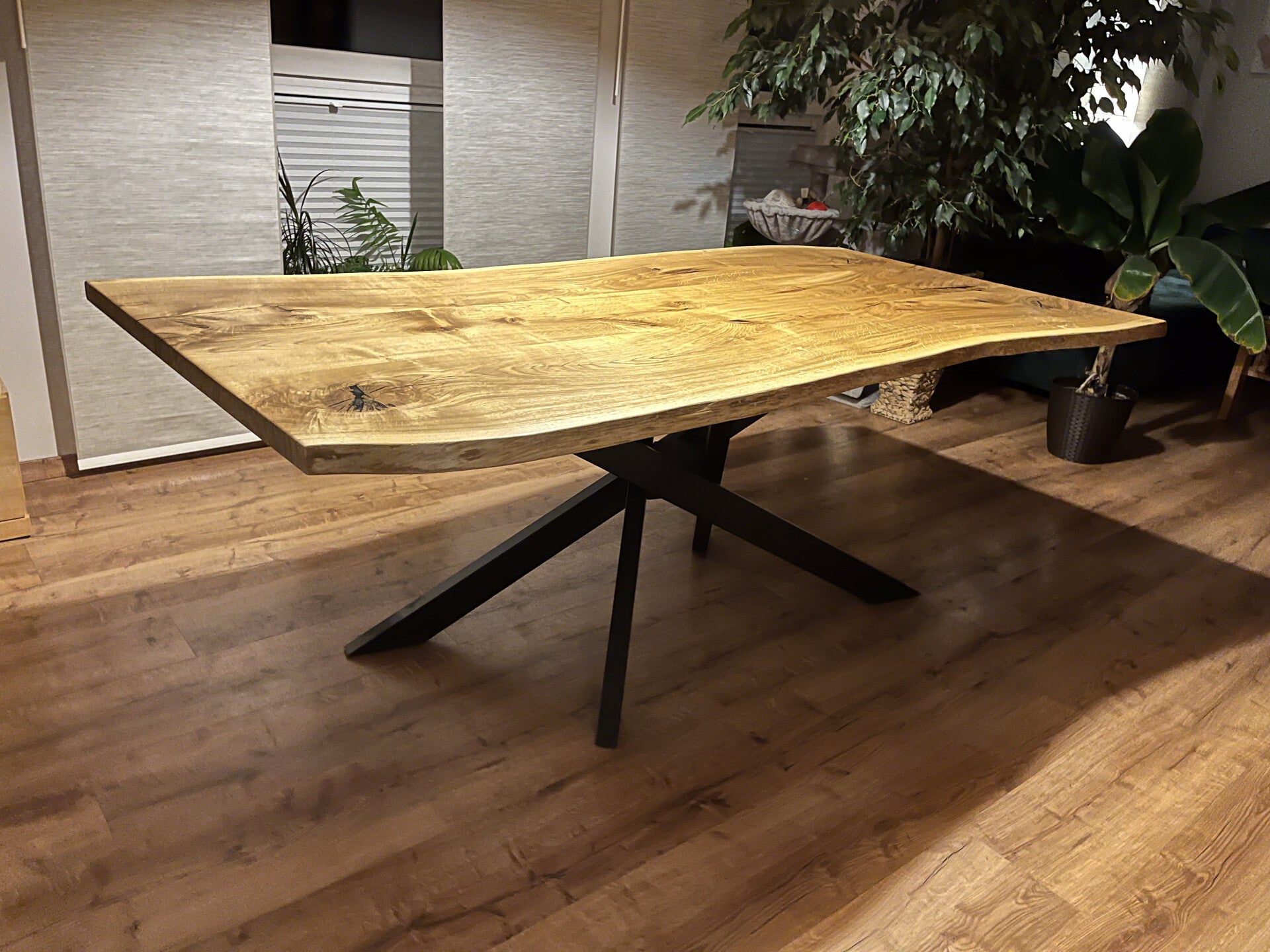 Tische nach Wunsch, ob breit oder lang, drin oder draußen, Eiche Ahorn oder Fichte. Individuell gefertigte Holztische sind etwas besonderes. Anfragen gern per Mail oder Telefon.