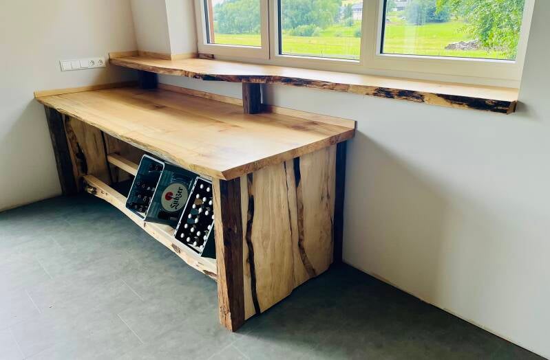 Theken und Barmöbel individuell hergestellt. Hartholz macht sie zu einem besonderen Blickfang.